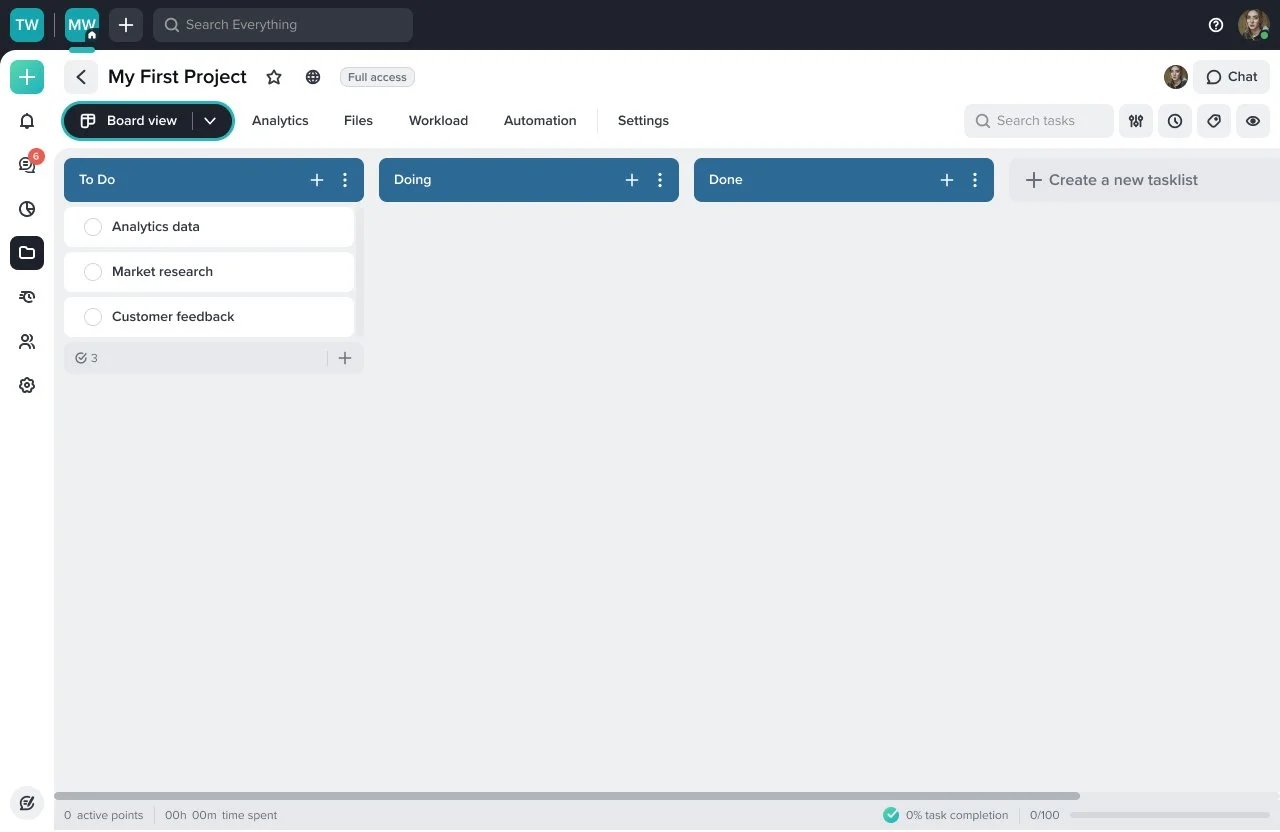 The "My Task" widget displays an overview of tasks assigned to the user across multiple workspaces. By incorporating this widget on the homepage, users can conveniently and efficiently review all tasks assigned to them without the need to visit each individual workspace. It enables them to quickly skim through and access their assigned tasks.