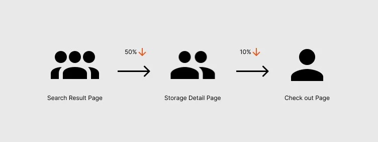 We found from the conversion data that more than 50% users didn’t move from search result page to storage detail page for booking. I listened to the sales calls and concluded that we didn’t provide enough information to motivate users to move to the next step for booking.